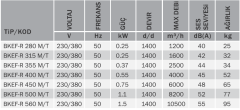 Bvn Bkef-r serisi mutfak fanlarının çalışma şekli monofaze (220V) veya trifaze’dir. (380V)